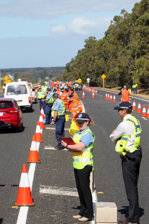 Robert Boyes reports that over the Easter period Volunteers from the Albany SES Unit assisted police in a number of operations. One of the major operations was road blocks to check all traffic in and out of the district. There were approximately 5000 vehicles stopped in the region for breathalyzer and advice on driver fatigue. The Albany SES had approximately 15 members there for the duration.