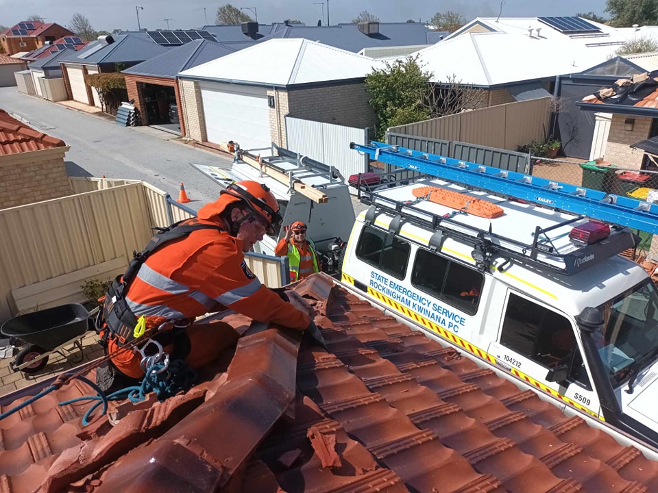 Call the SES on 132 500 and report the damage and request assistance