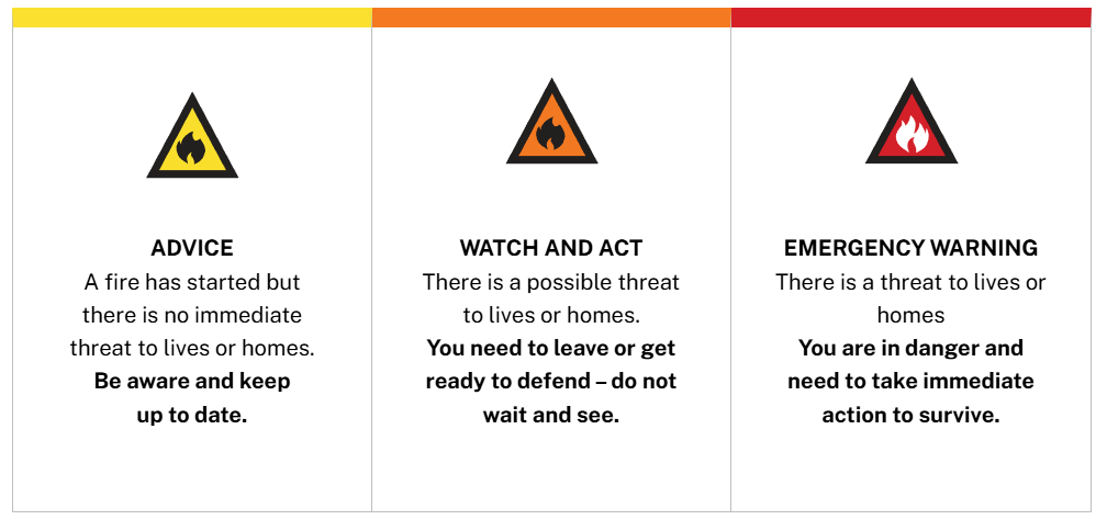 The bushfire warning levels are: